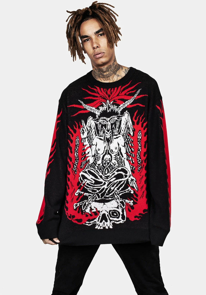 ✦ Fiery red Baphomet intarsia design