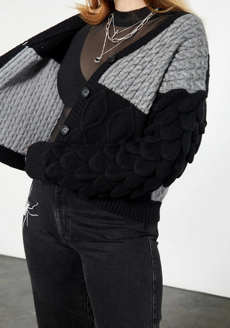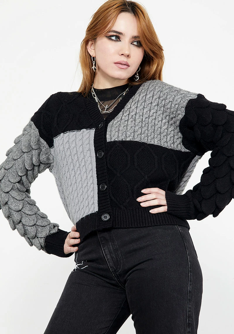 – Black & grey spliced chunky knit cropped cardigan  Â