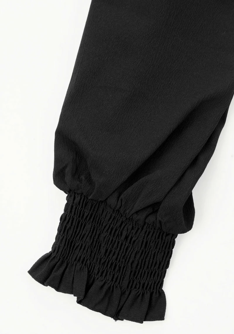 – Wide elasticated cuffs with a soft pleated flare for drama and flap-free convenience