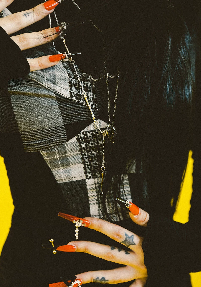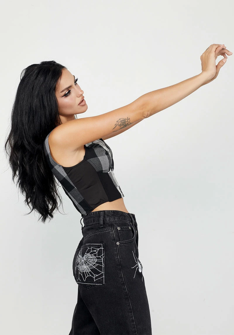 ✦ Black and grey plaid corset top