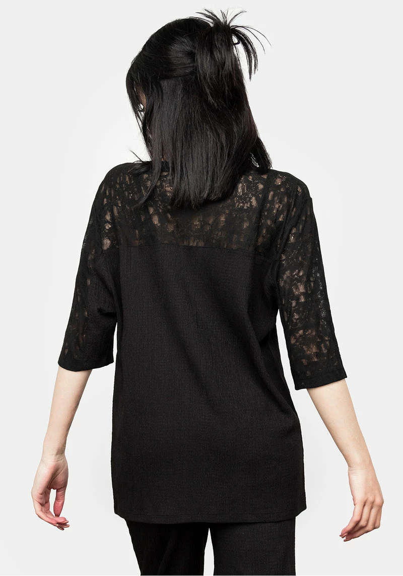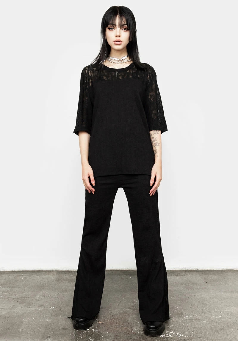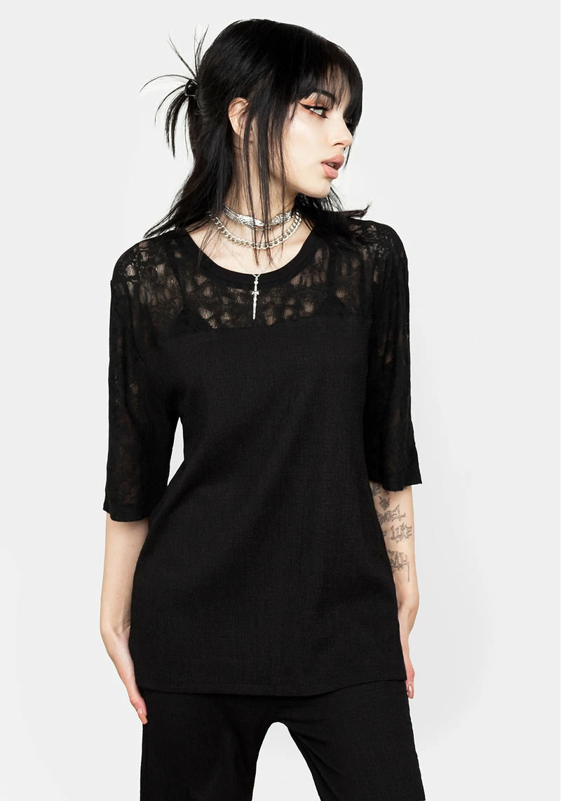 ✶ Black lace panel T-shirt