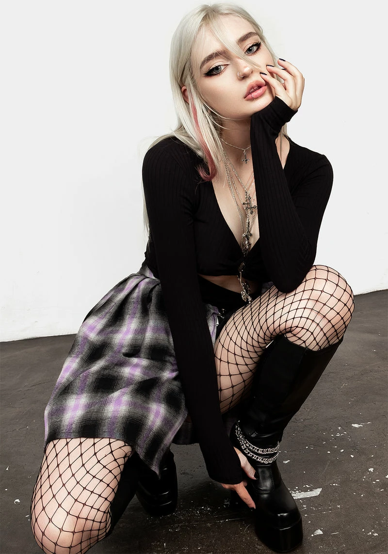 ✦ Black long sleeve jersey top with cut out detail