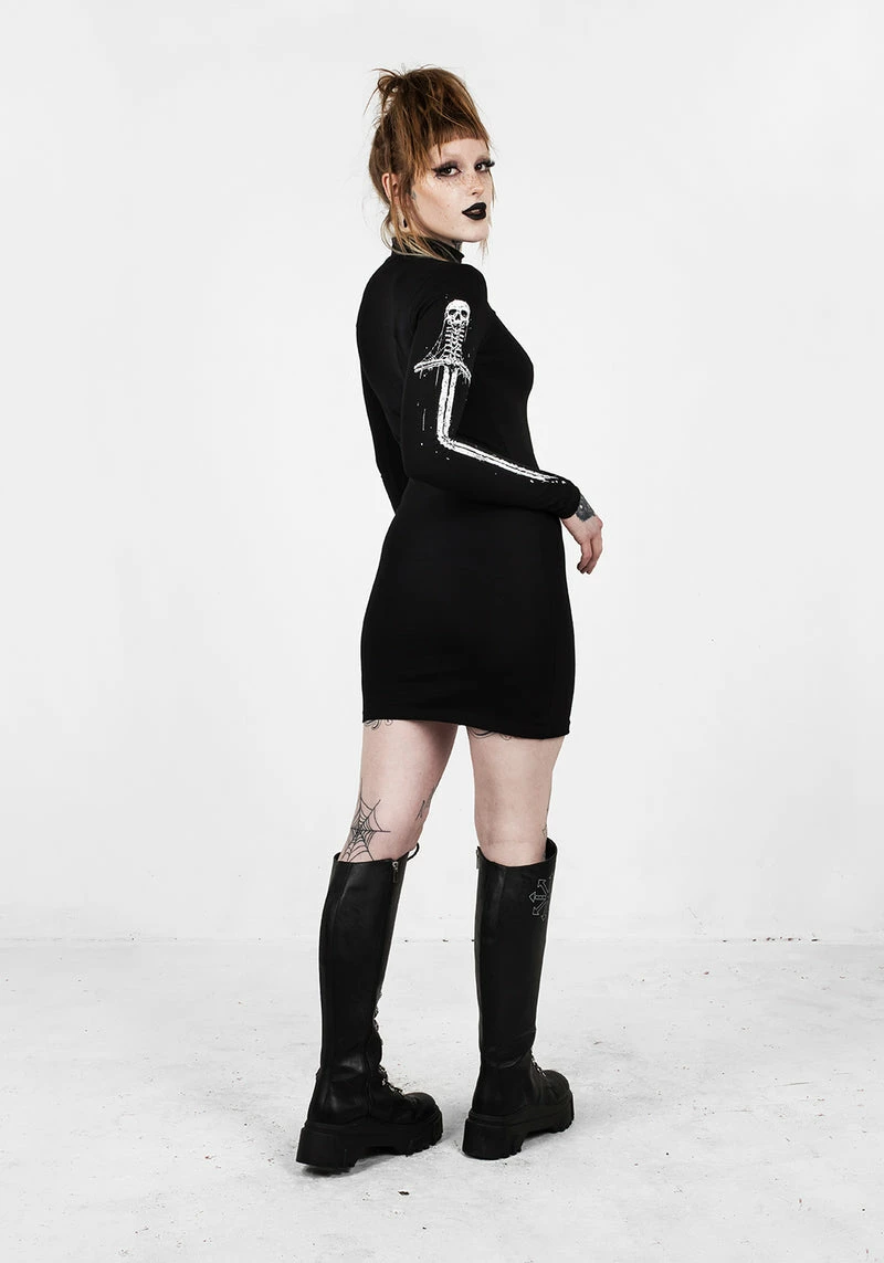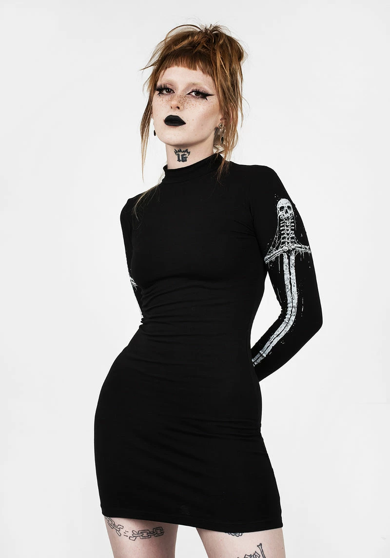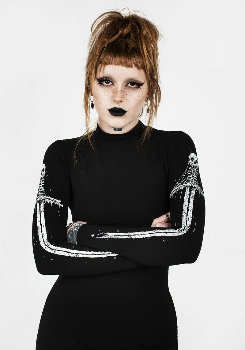 ✦ Gruesome skull-hilted sword print on sleeves