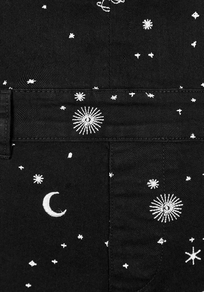 âśş White all-over embroidery – stars, moons + planets (no loose threads on inside of jeans)