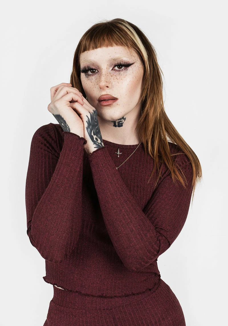 ♥ Maroon jersey long sleeve crop top