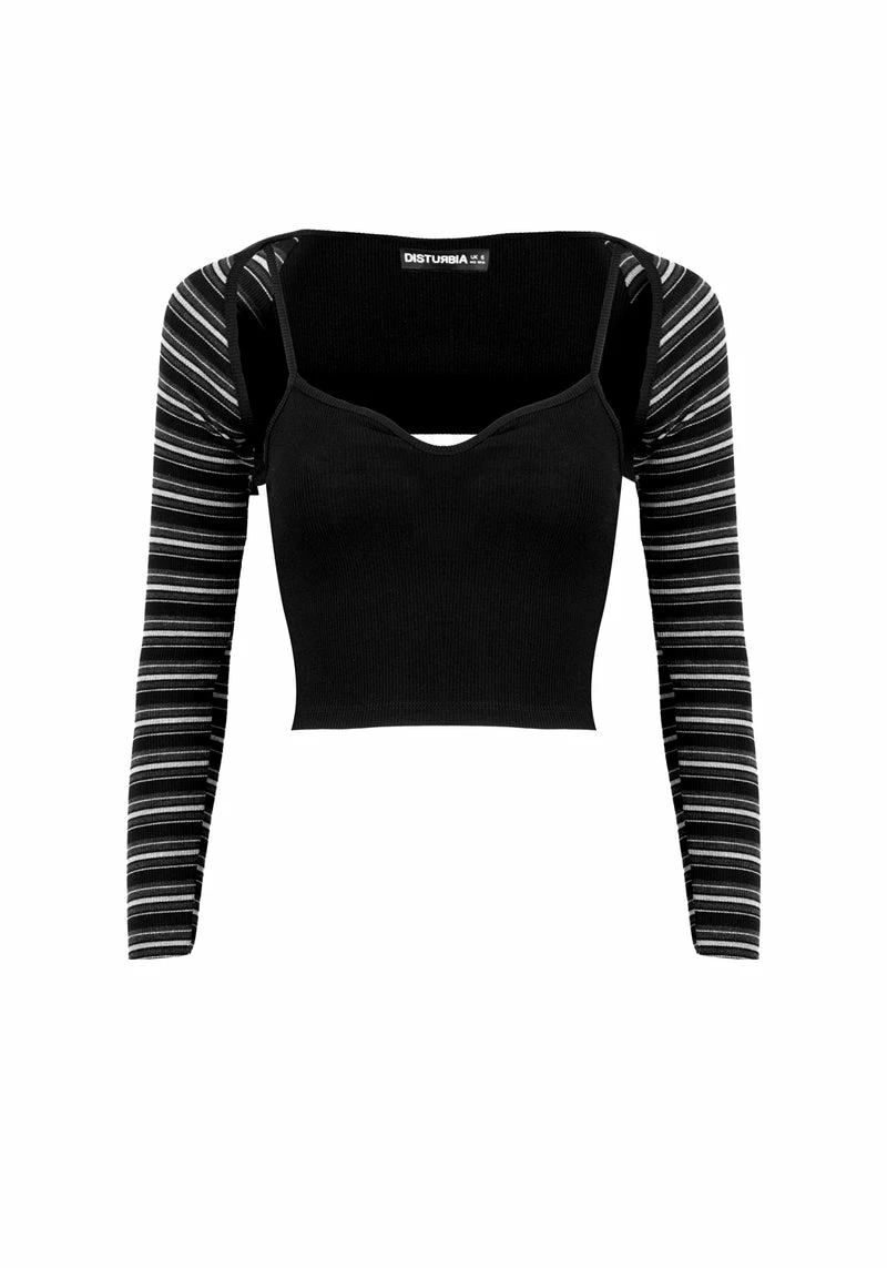 ✦ Black cropped cami and striped sleeve cardigan