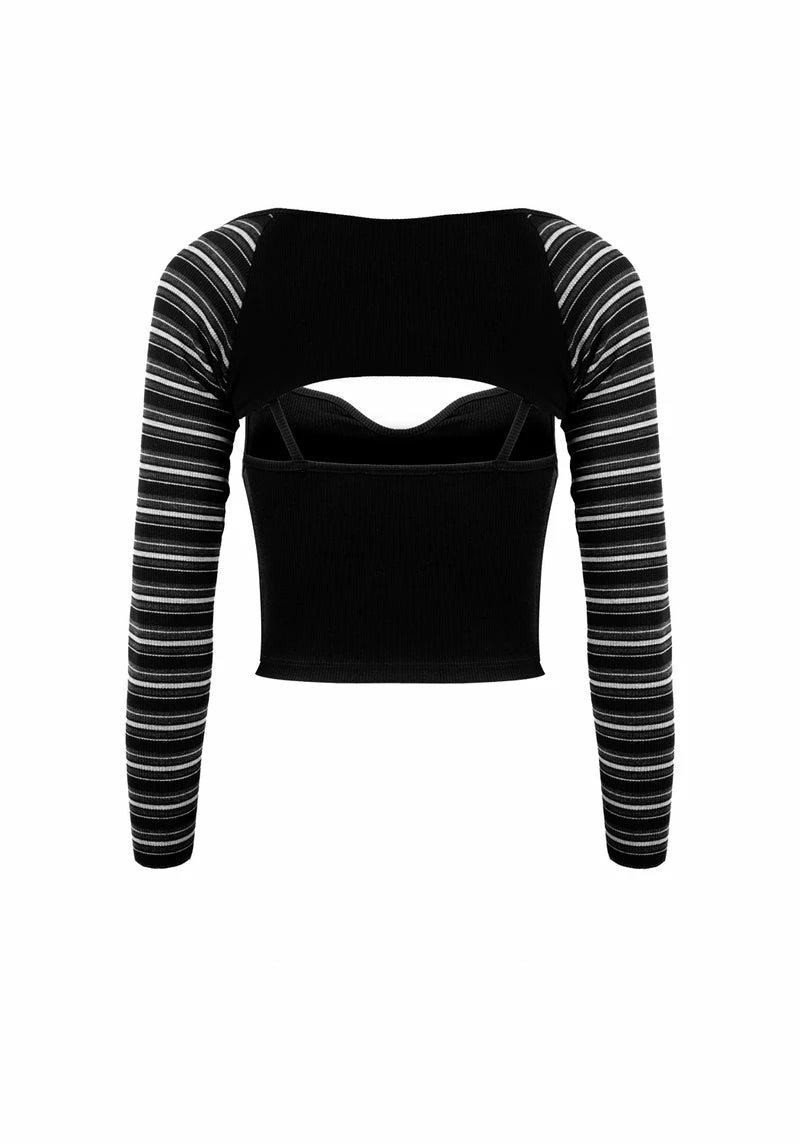 ✦ Greyscale striped sleeves contrast block cami