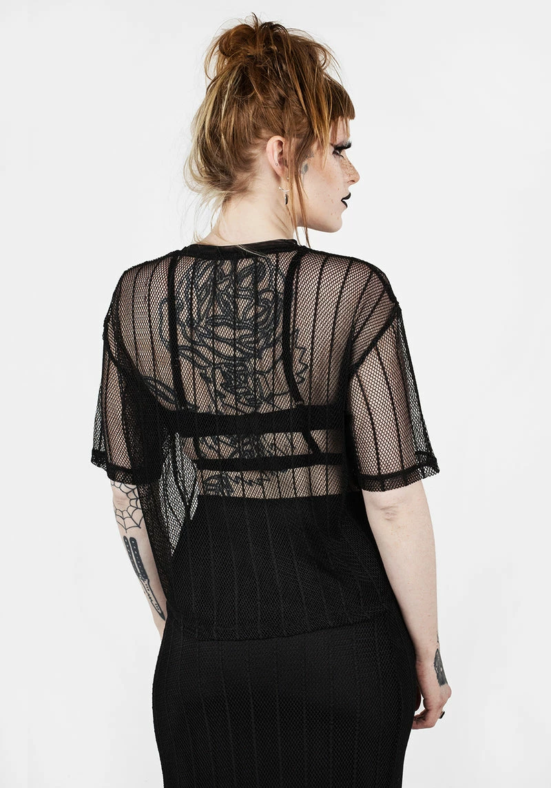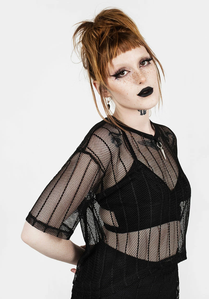 ✦ Black stiped mesh boxy crop top