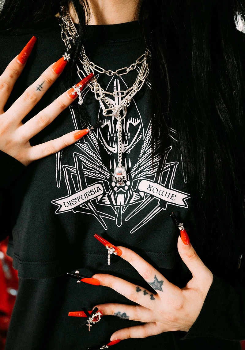 ✦ Exclusive branded Disturbia x Xowie front and sleeve graphic print