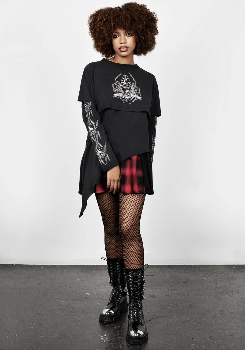 ✦ Black washed jersey layered tee