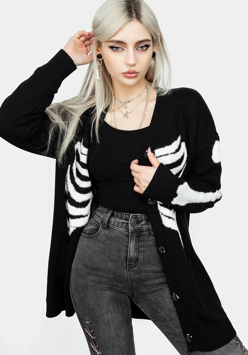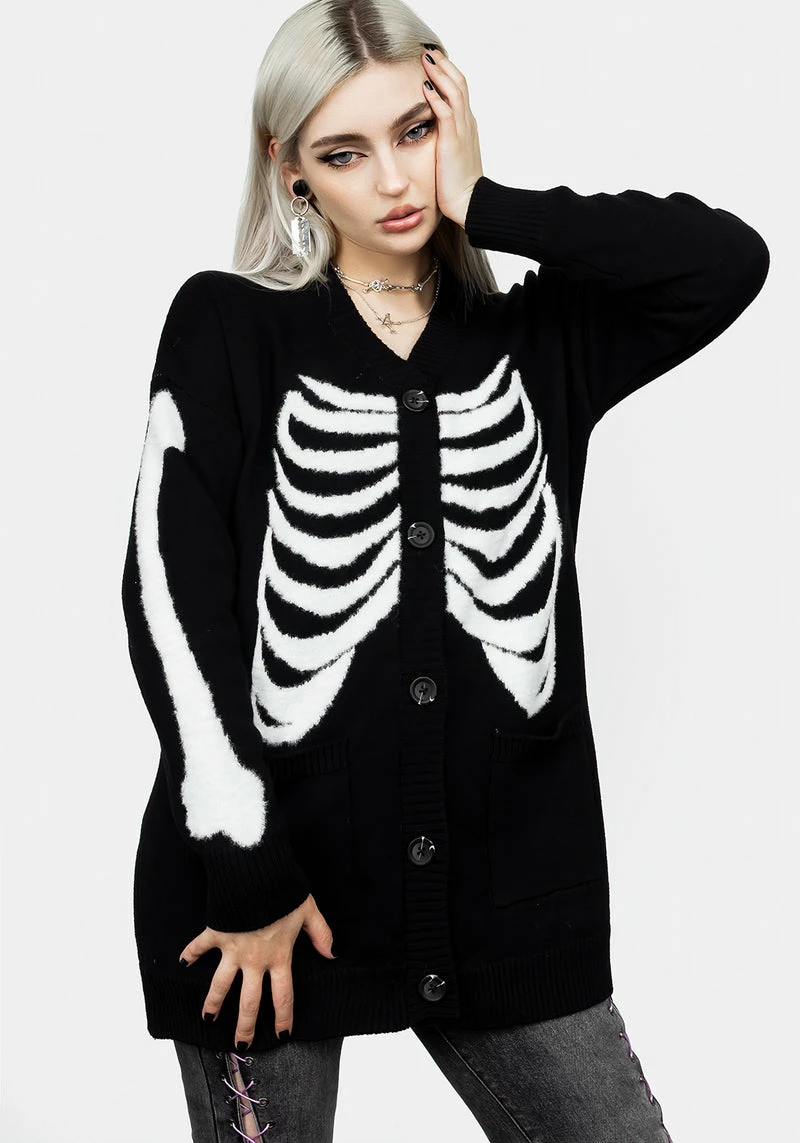 ✦ Contrasting white skeleton intarsia kit pattern on front, back, and sleevesÂ