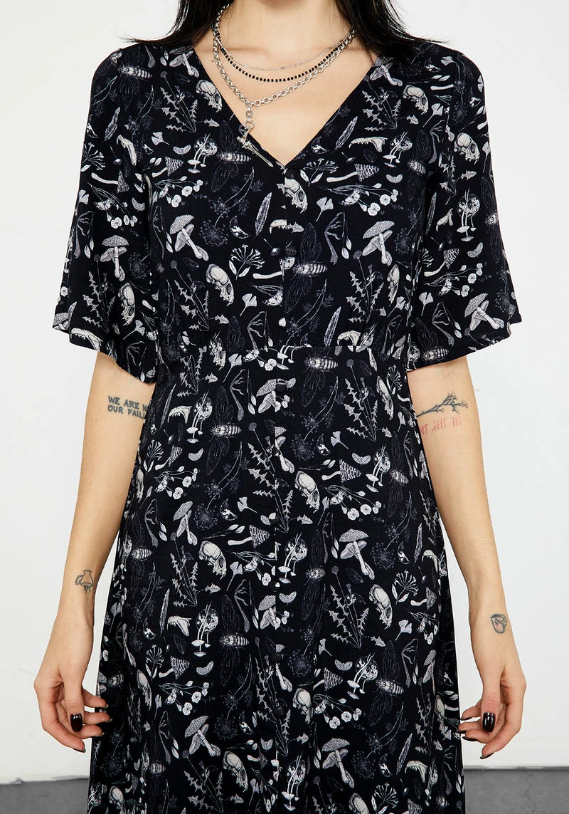 – Non-functional self-fabric domed buttons down centre for a folkish touch without the hassle