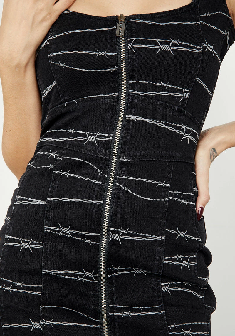– Discharge printed barbed wire all-over design – long-lasting & crystal clearÂ
