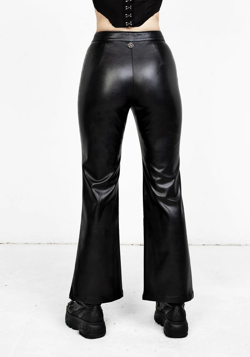 ✦ Black leather gothic flared trousers