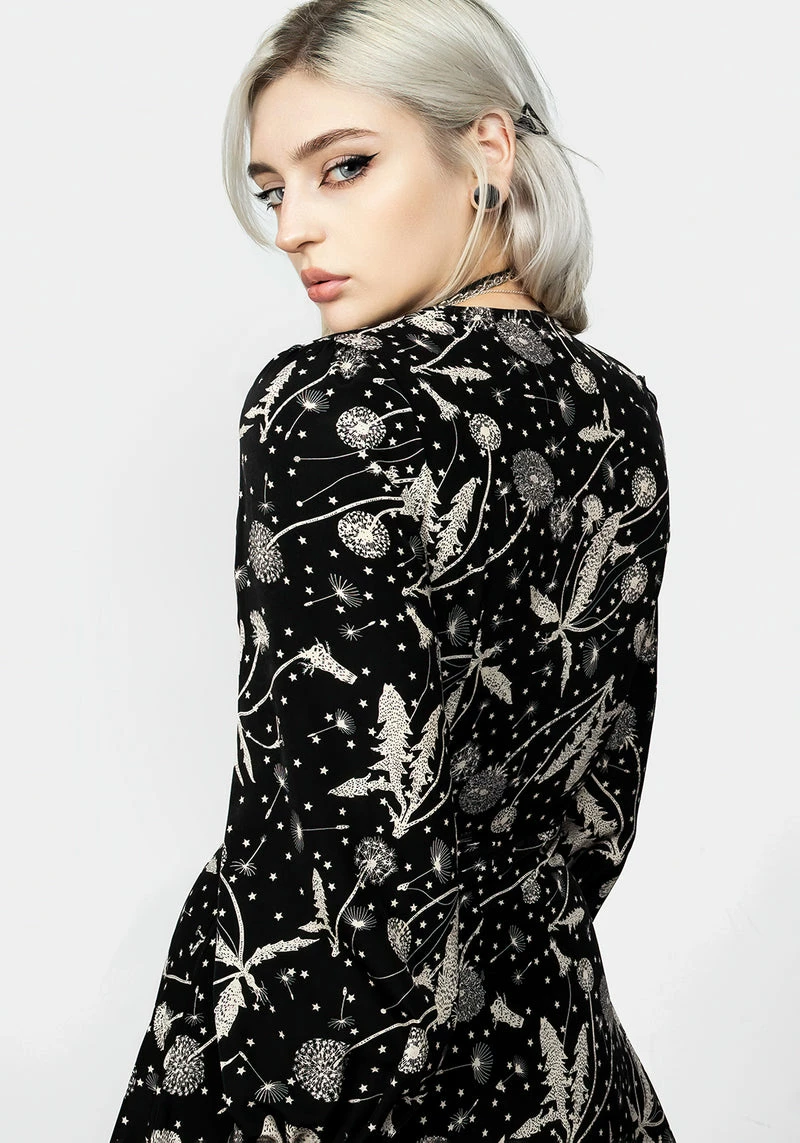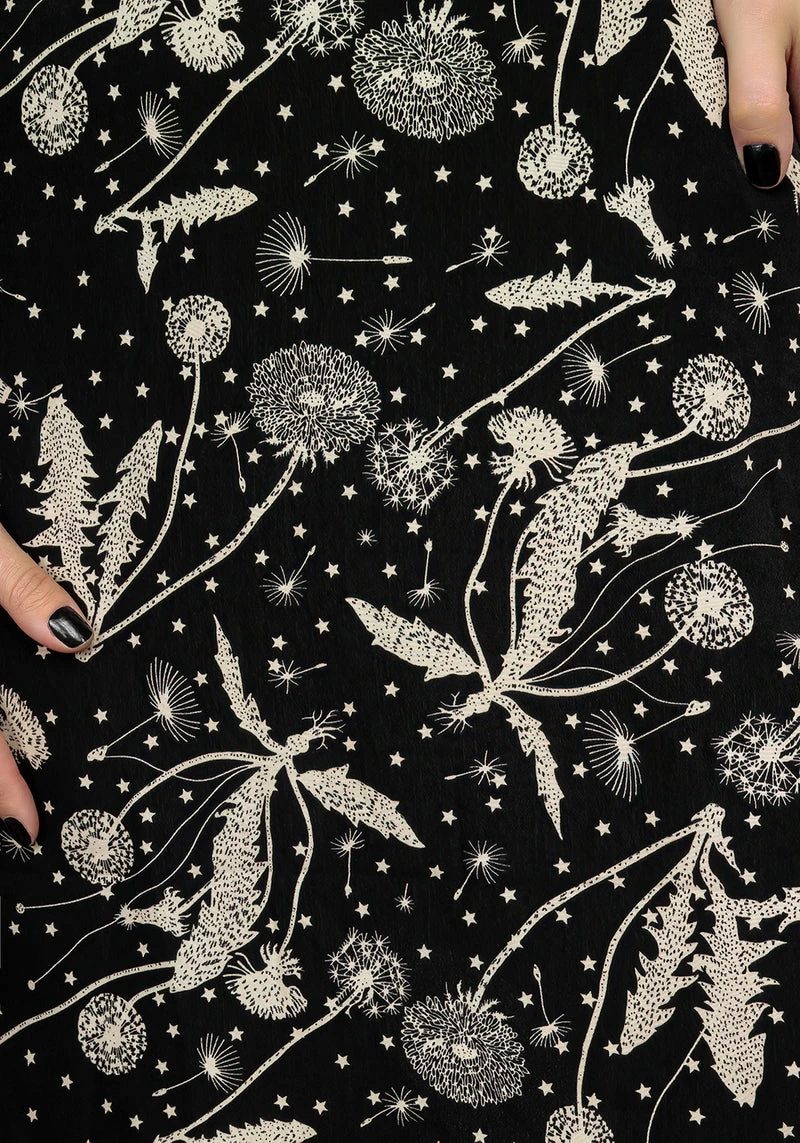 ✦ Soft, silk-like flowing fabric with darling dandelion print (non-stretch)Â