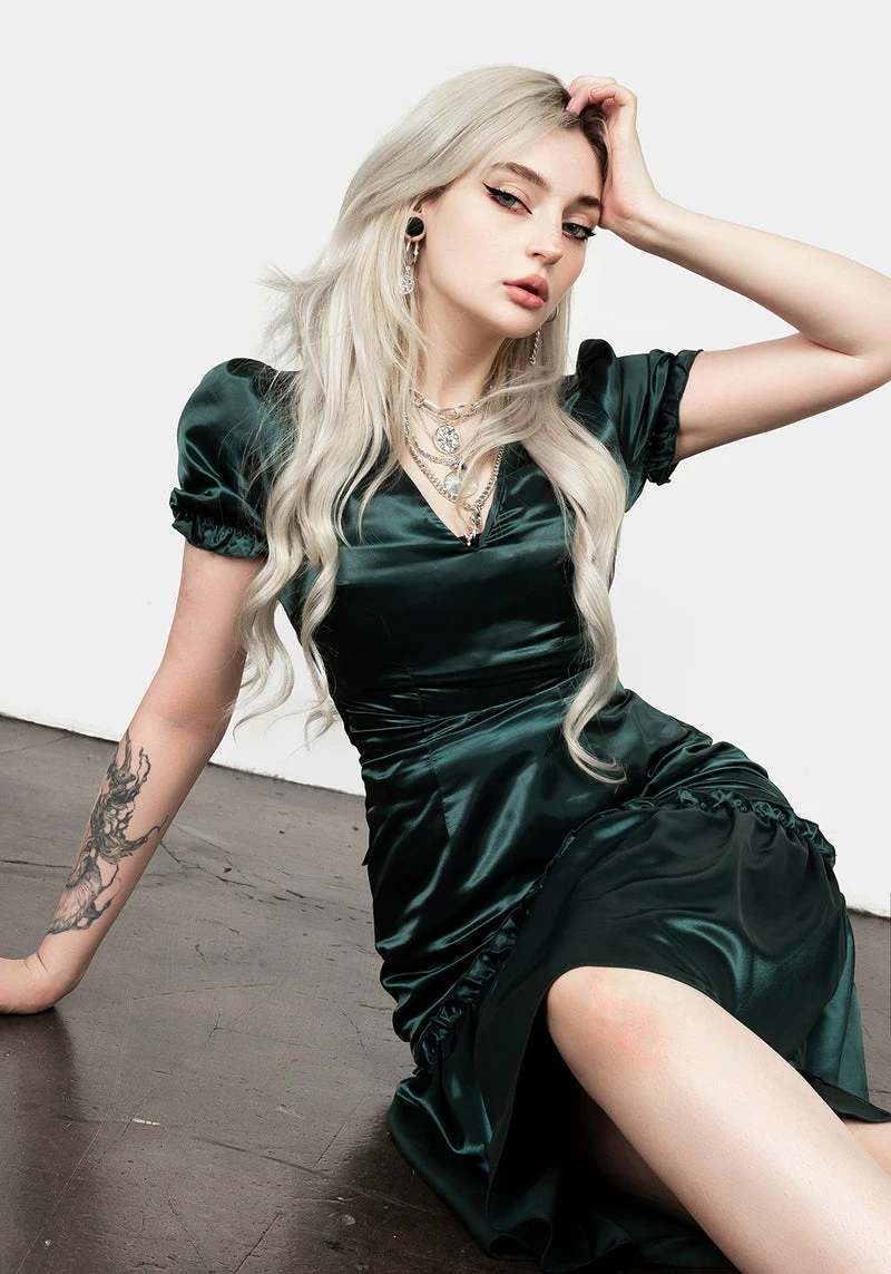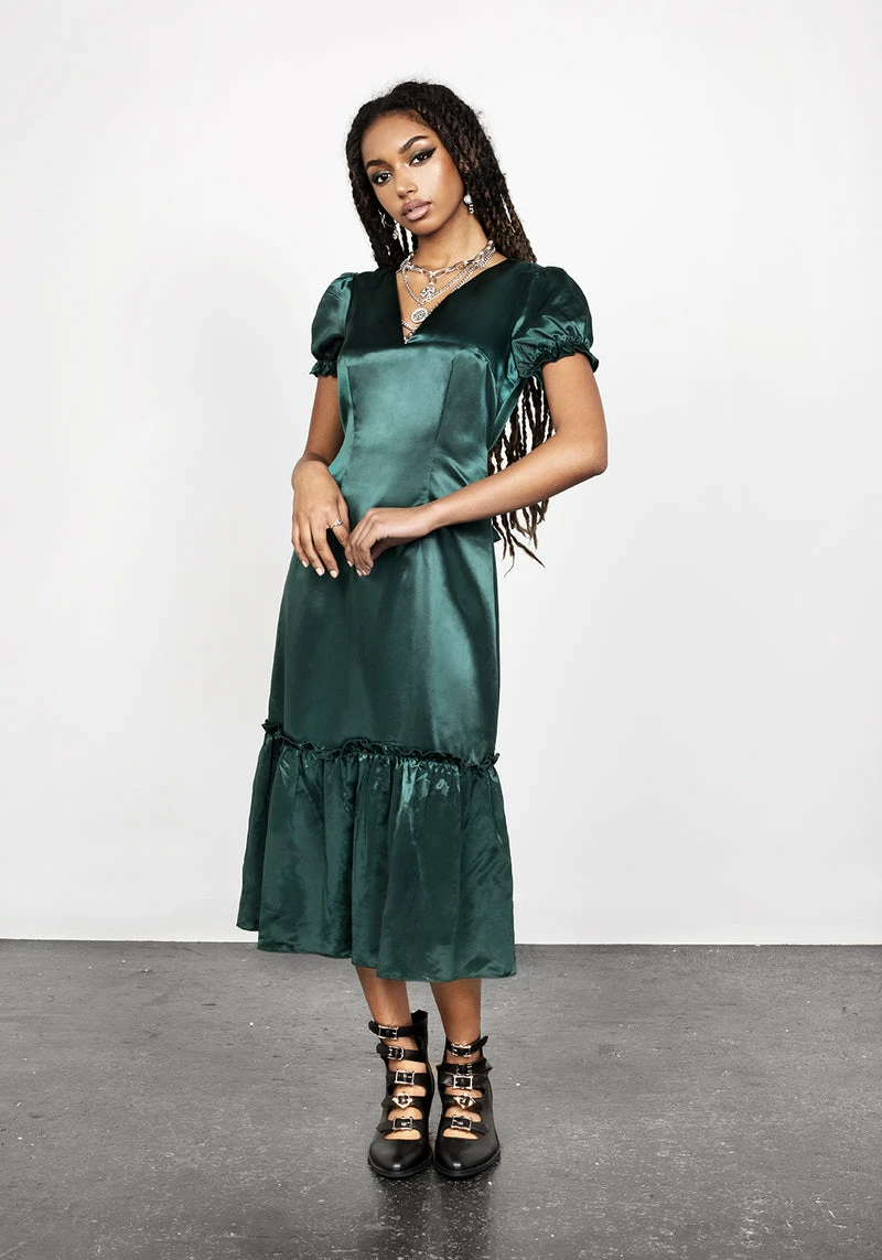 ❦ Emerald green midi tier dress