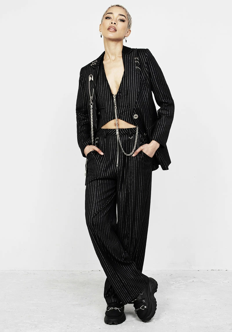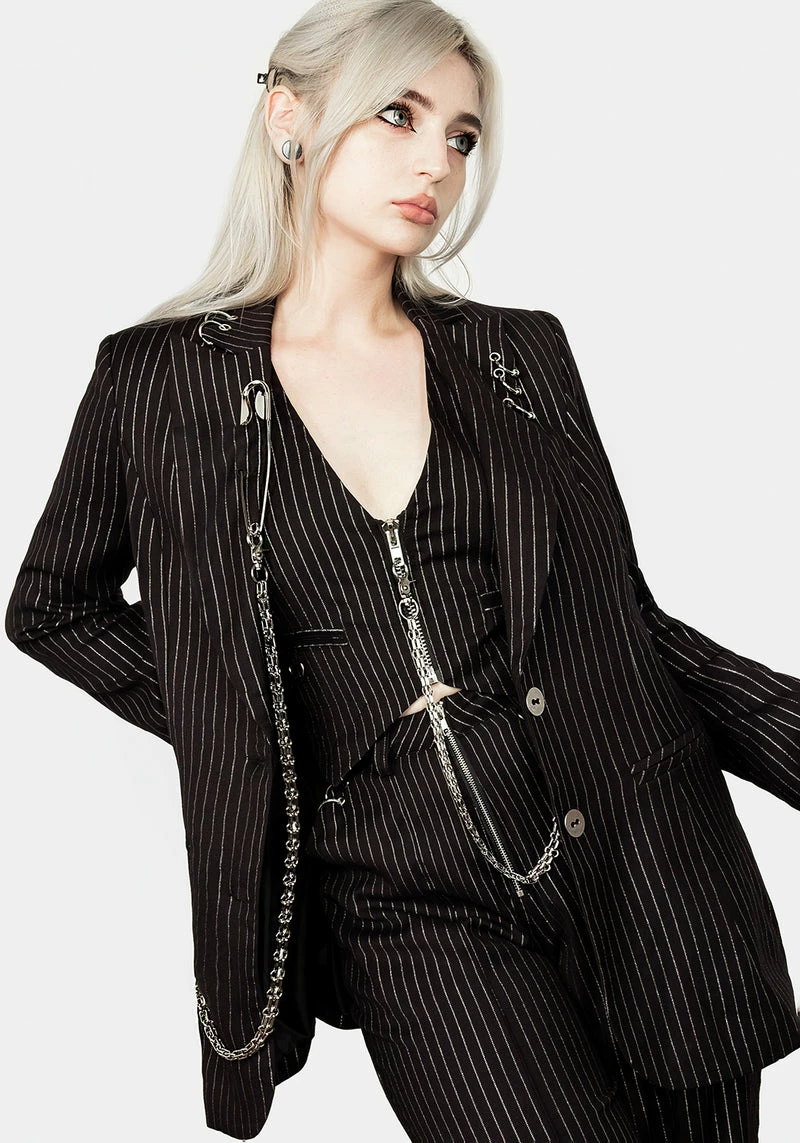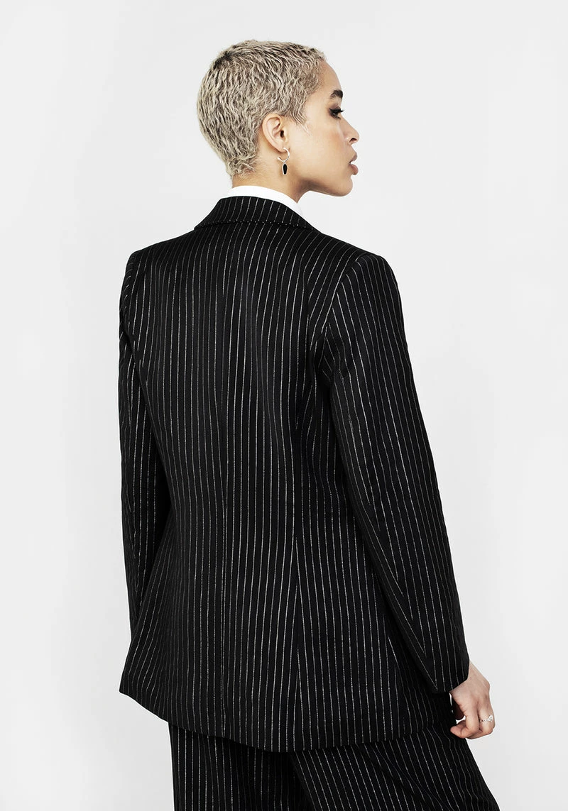 ✦ Black pinstripe blazer with silver hardware Â