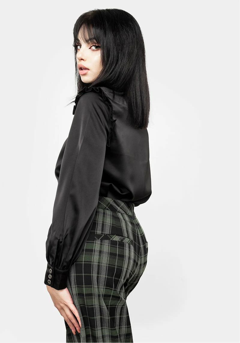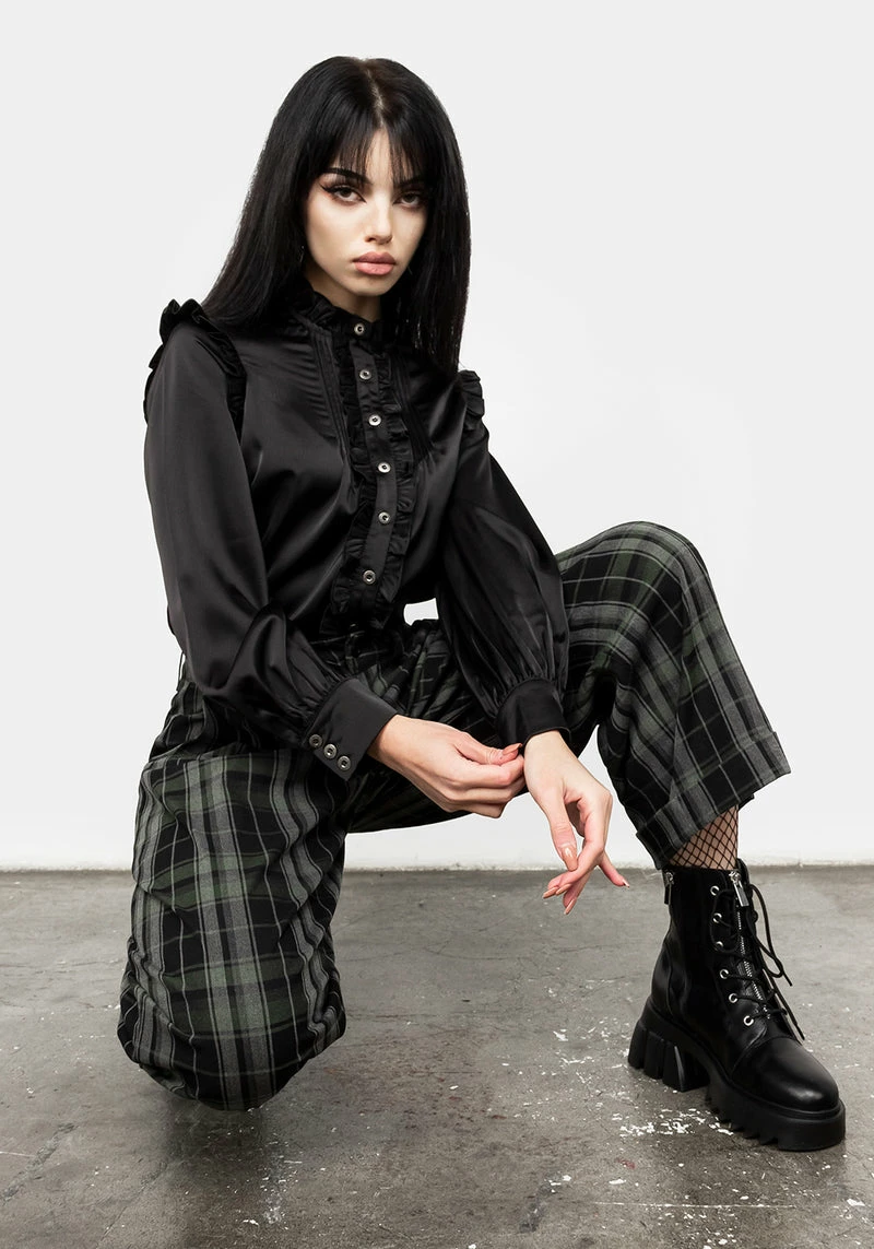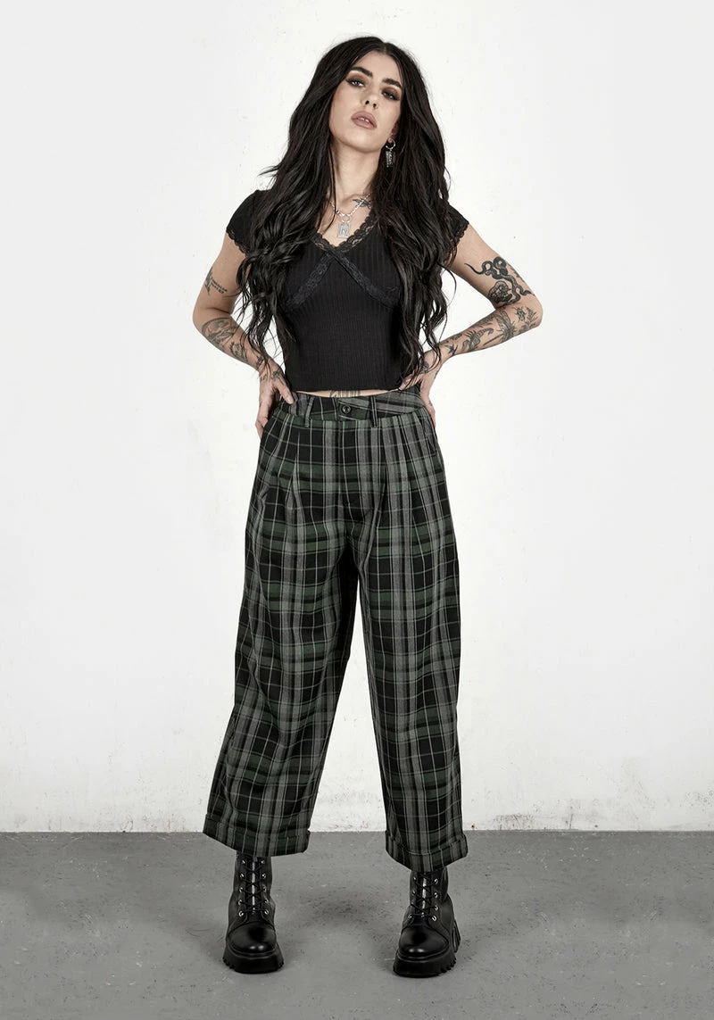 ❦ Grey, black & green check crop pants