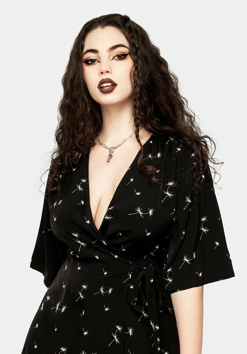 âś§Â Floral kimono style wrap mini dress in black