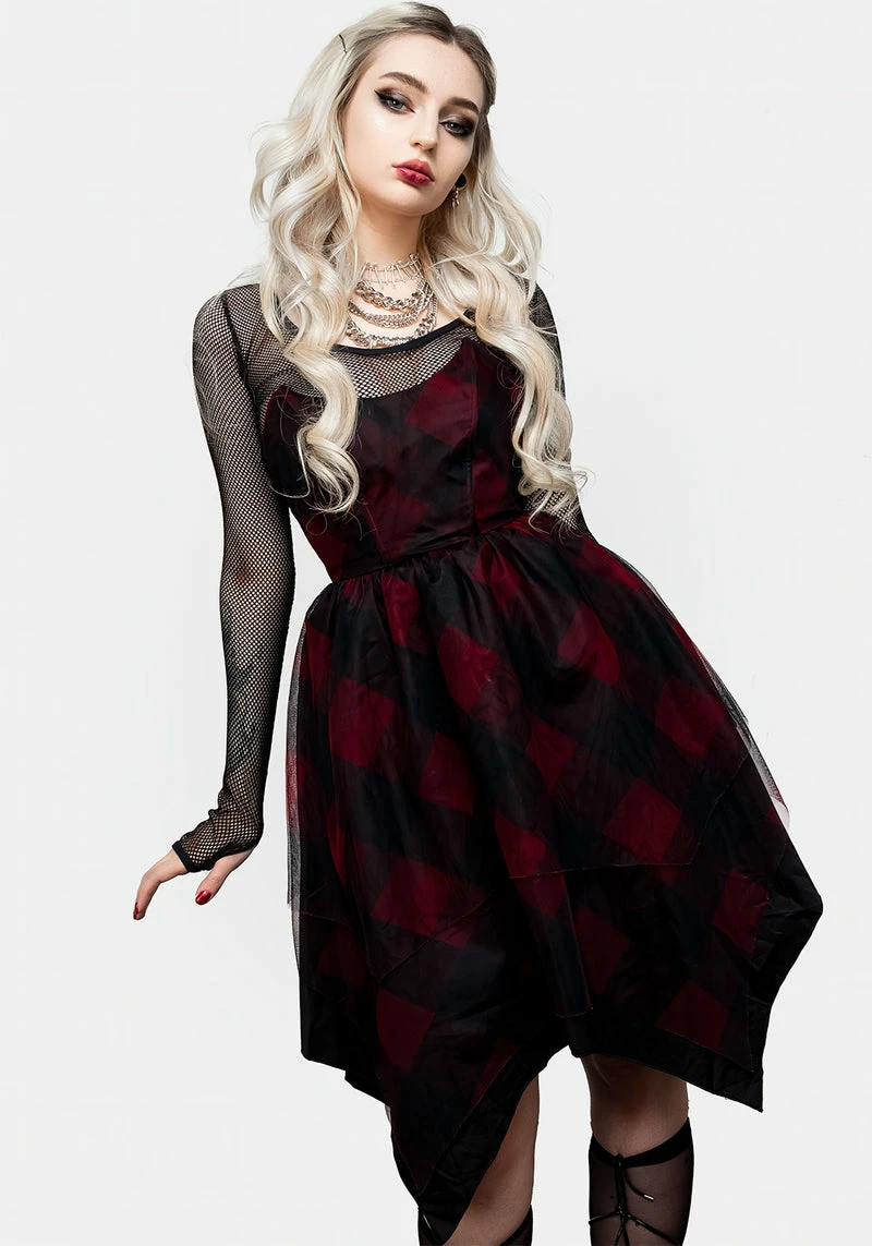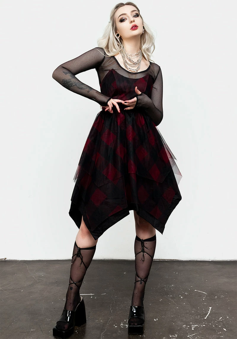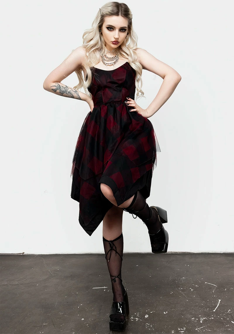 – Pointed sweetheart neckline and irregular handkerchief hem – take a different angle
