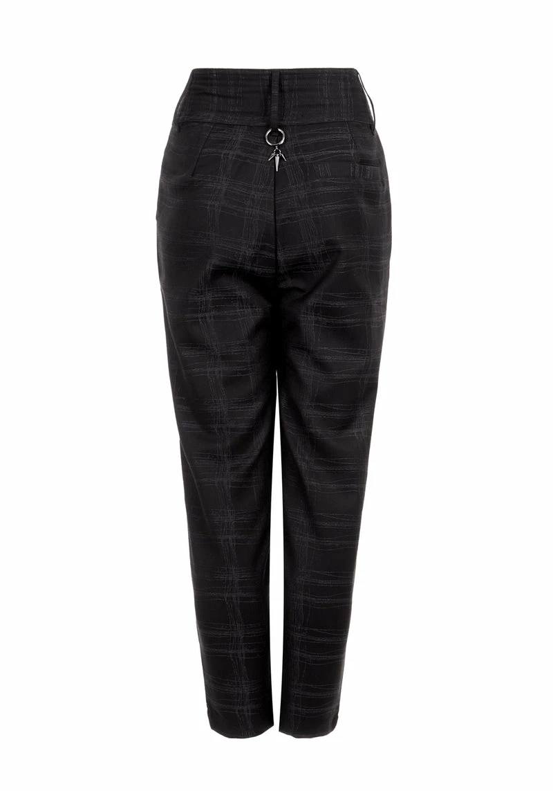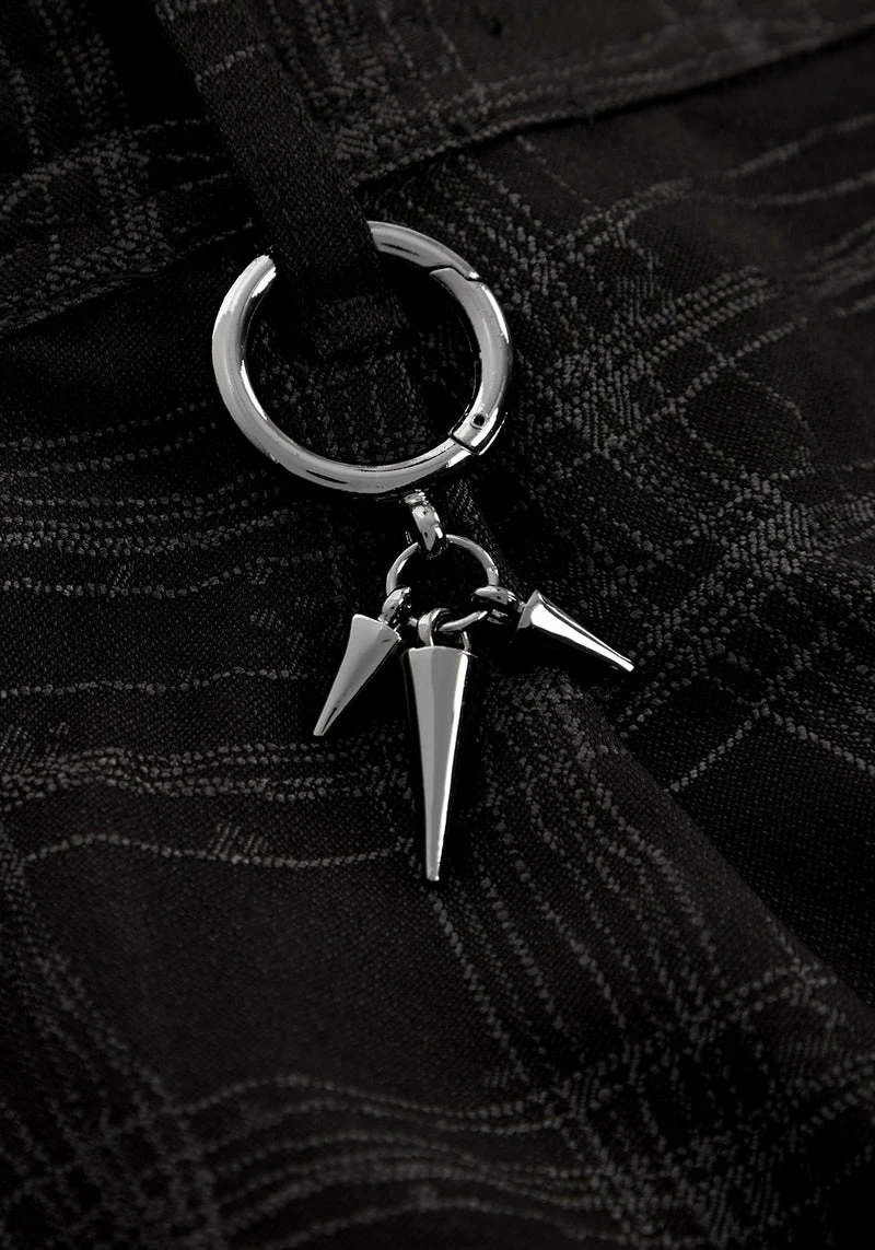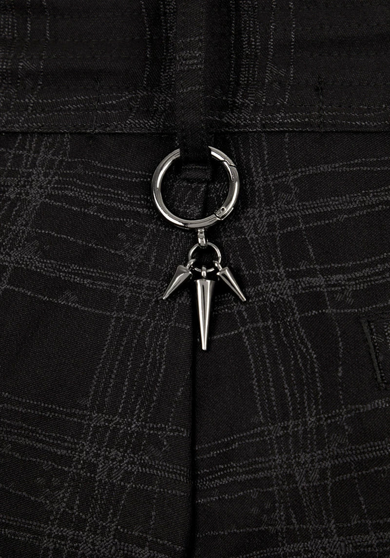 ✦ Spiked gunmetal O-ring hangs from back belt loop