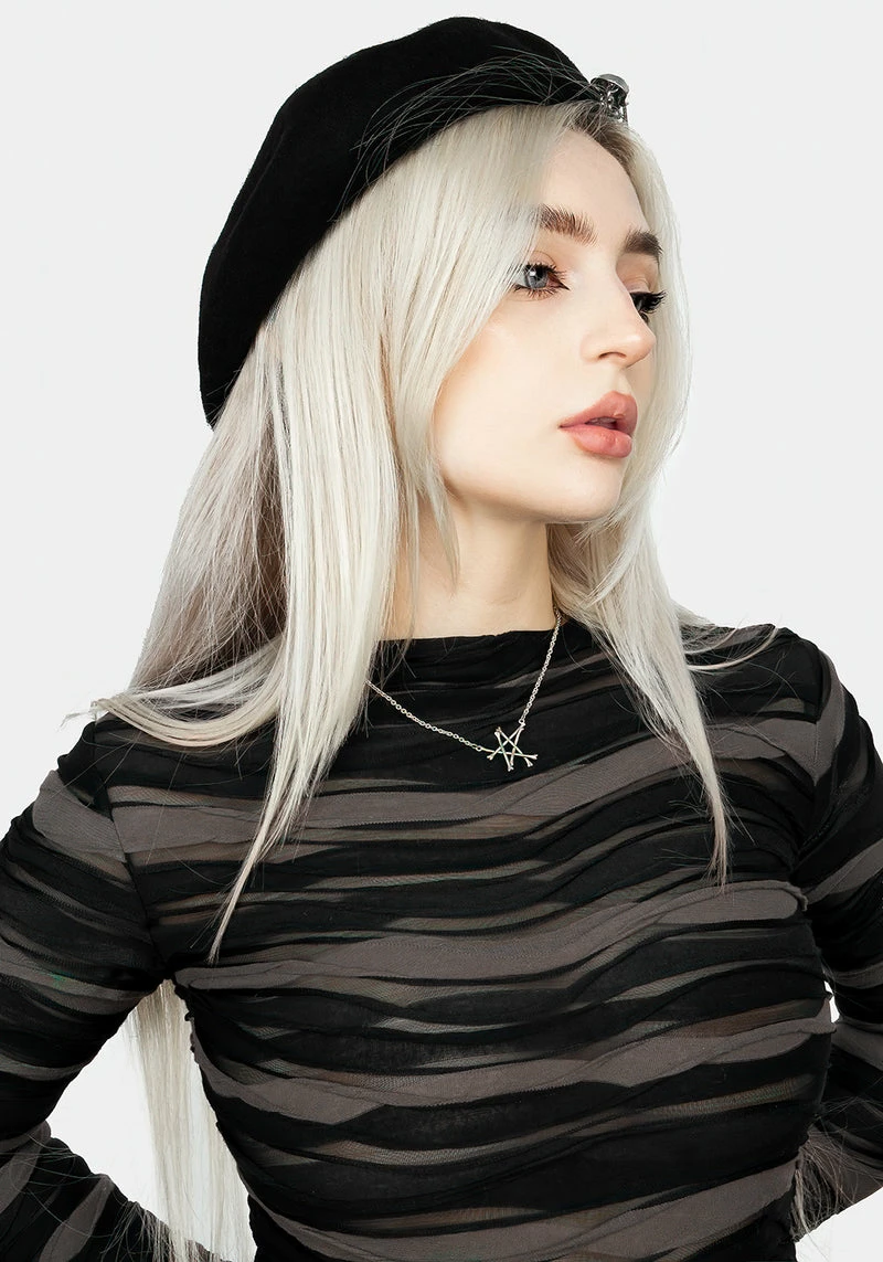 ✦ Textured mesh raw hem long-sleeved top