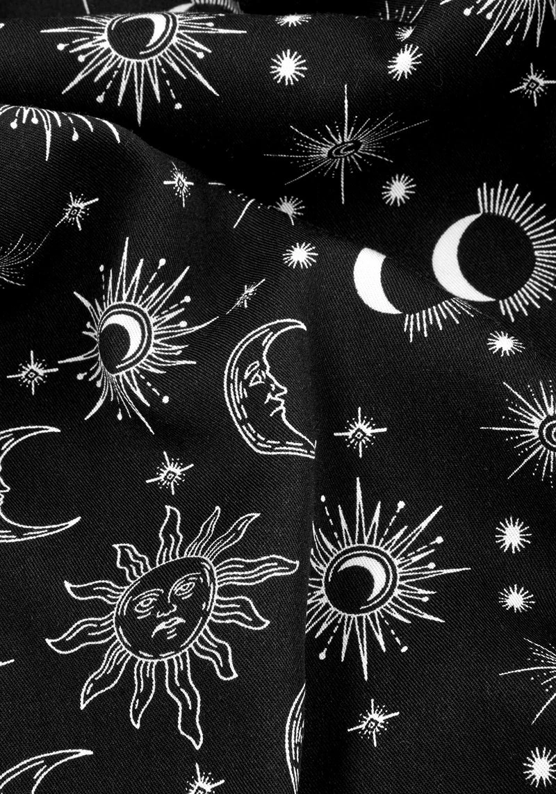 ✦ All-over white celestial print on black fabrication