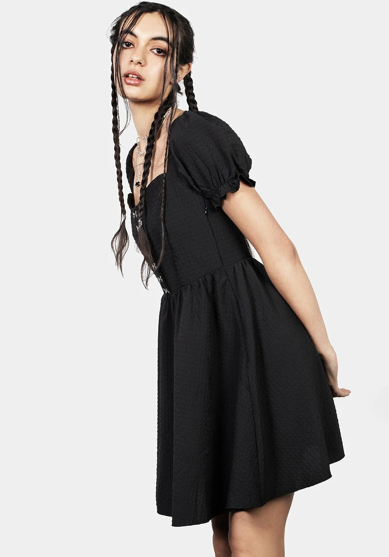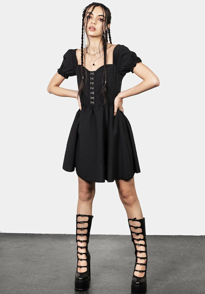 – Dramatic short puff sleeves with elasticated cuffs  Â