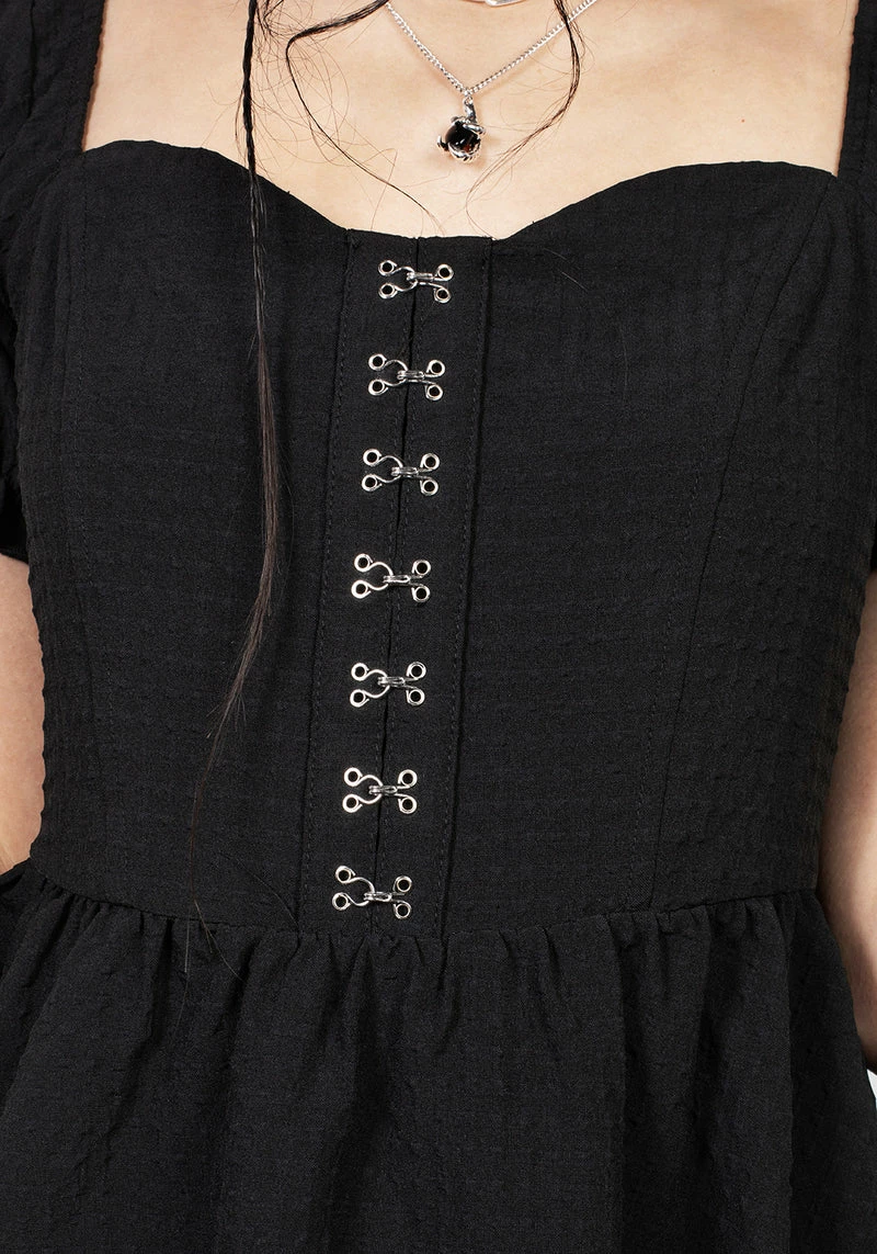 – Faux hook-and-eye fastenings down bust – concealed side zipper for easy dressingÂ
