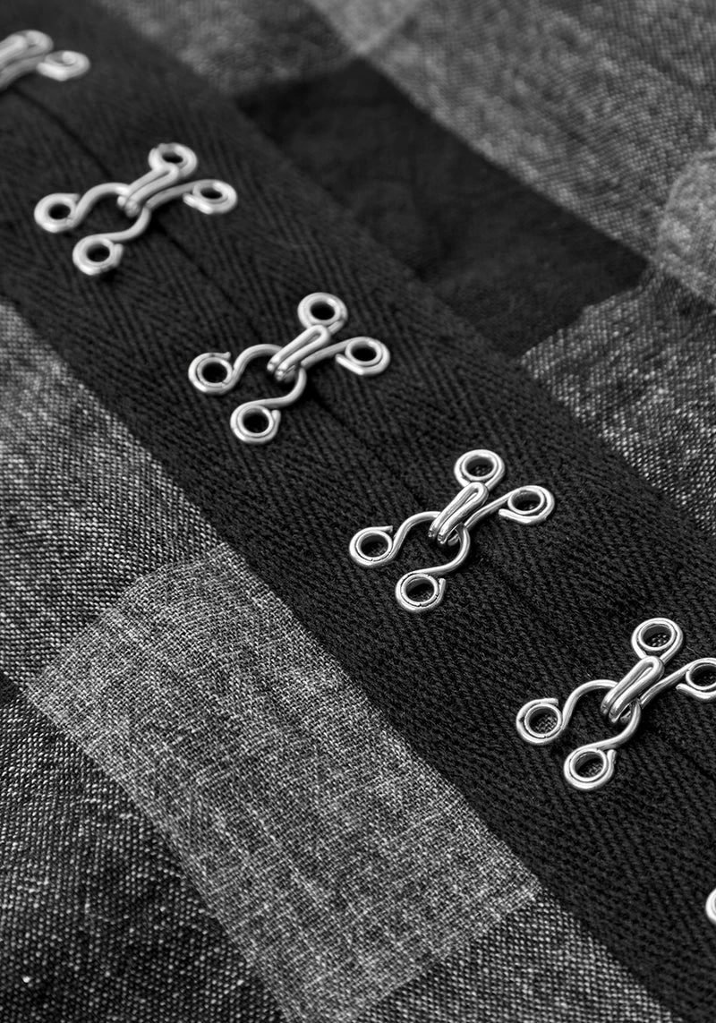 ✦ Ornamental hook-and-eye fastenings on centre frontÂ