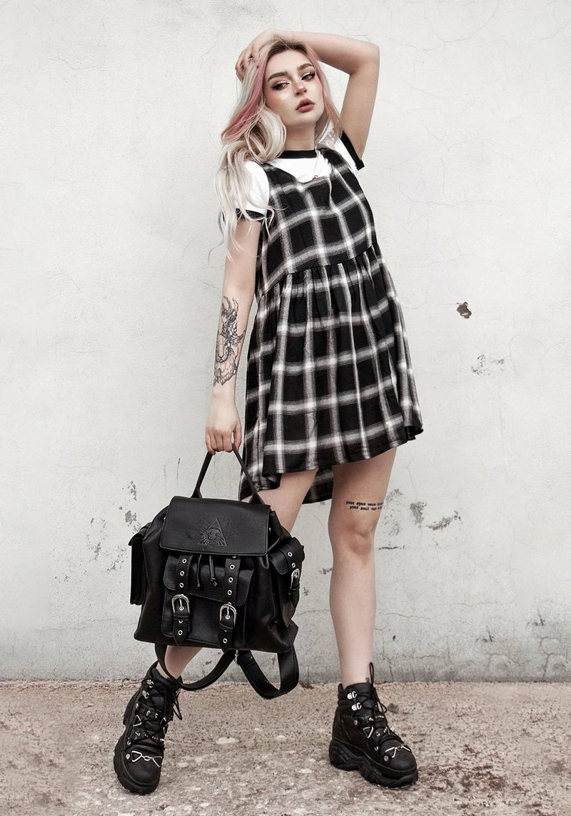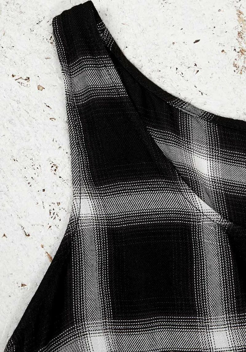 ◇ All-over black, grey & white plaid print
