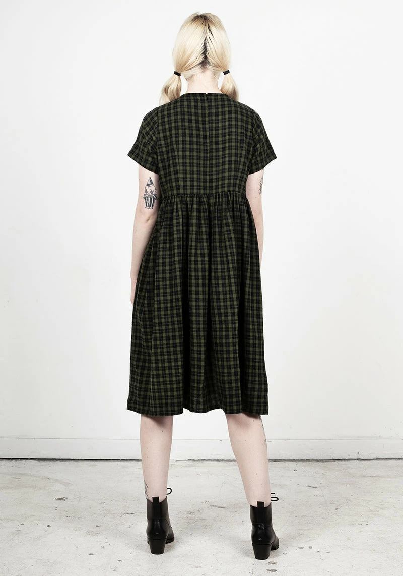 âś¶Â Green gingham smock midi dress