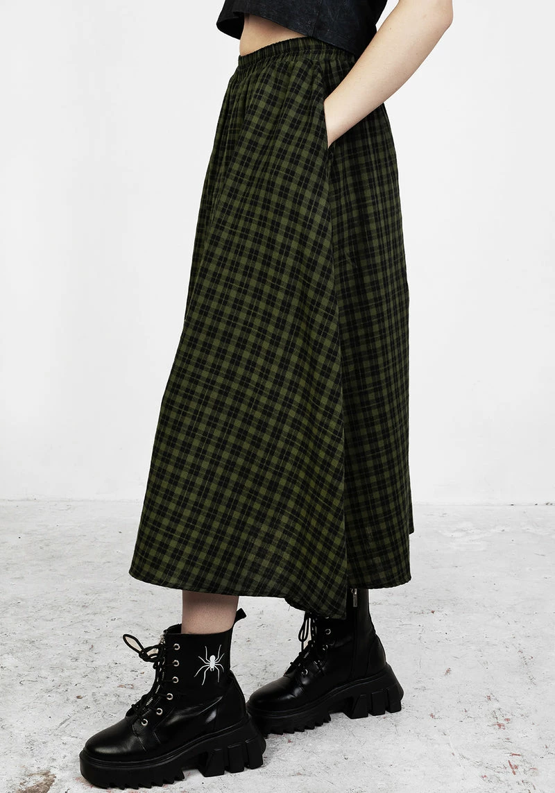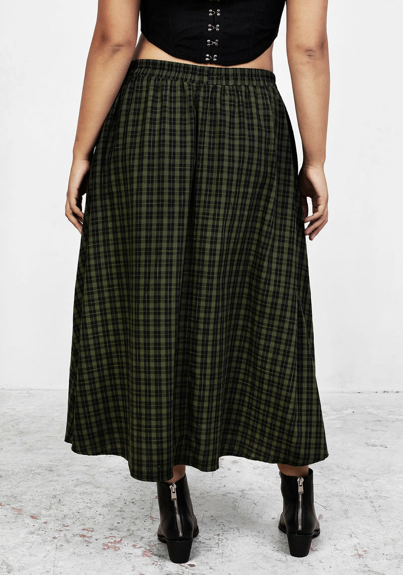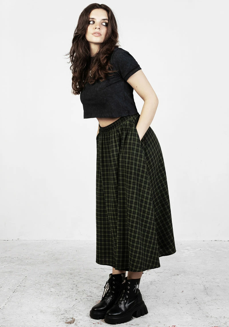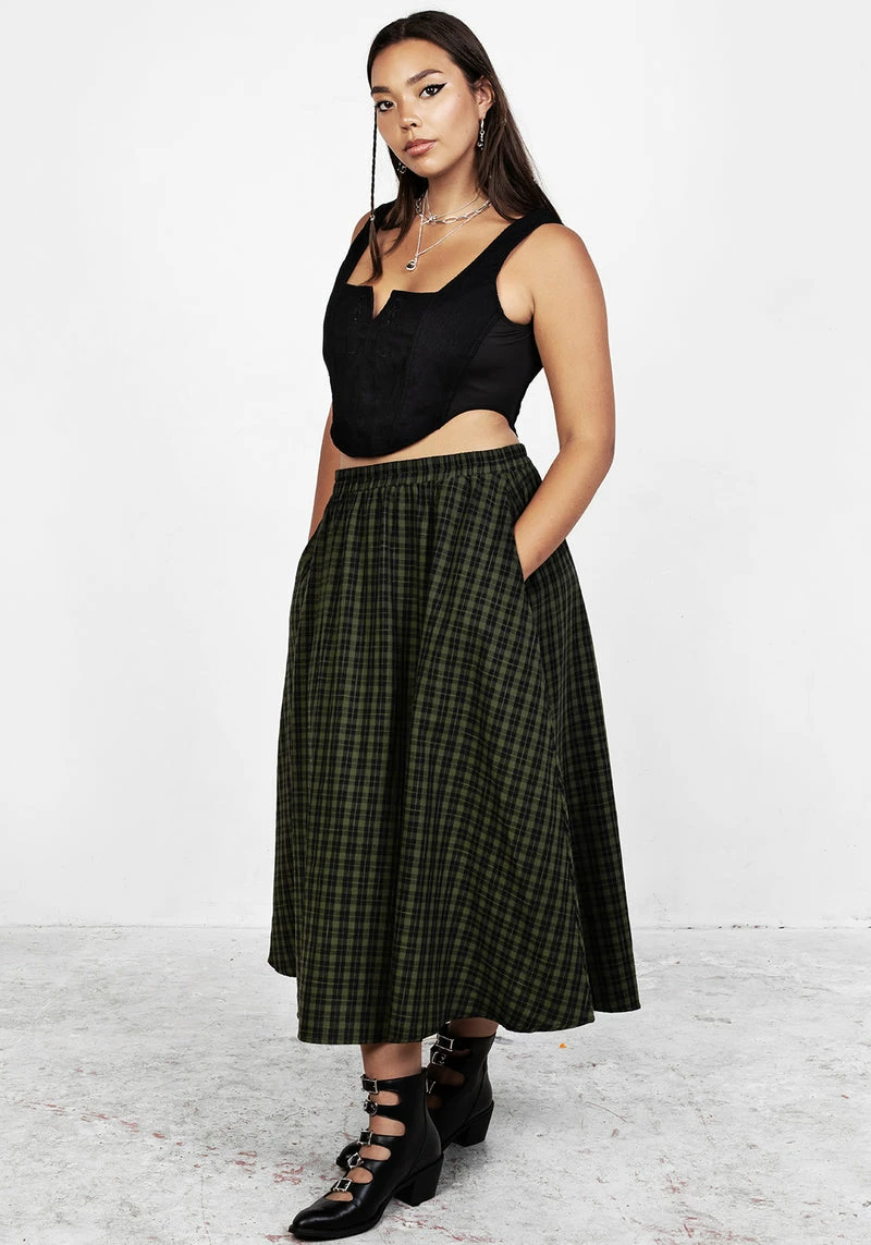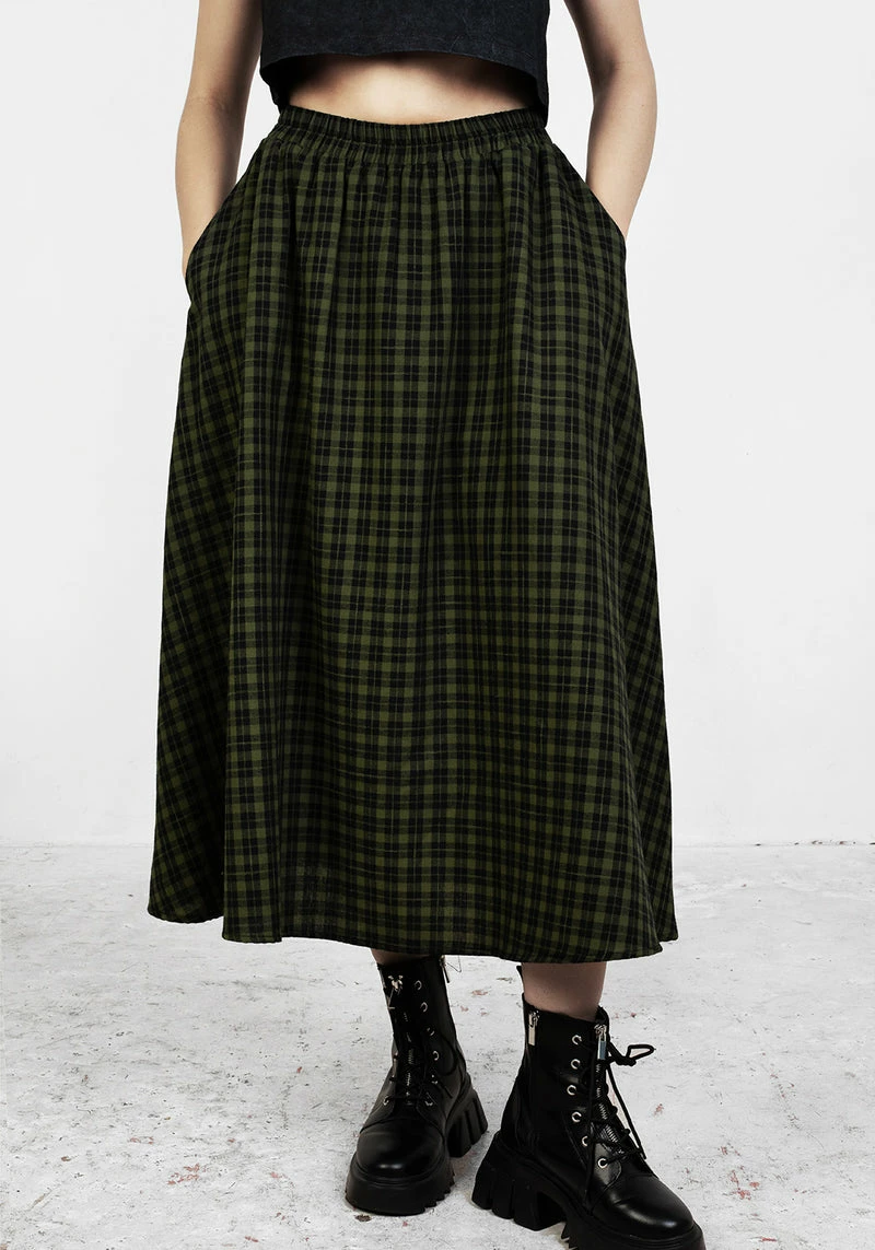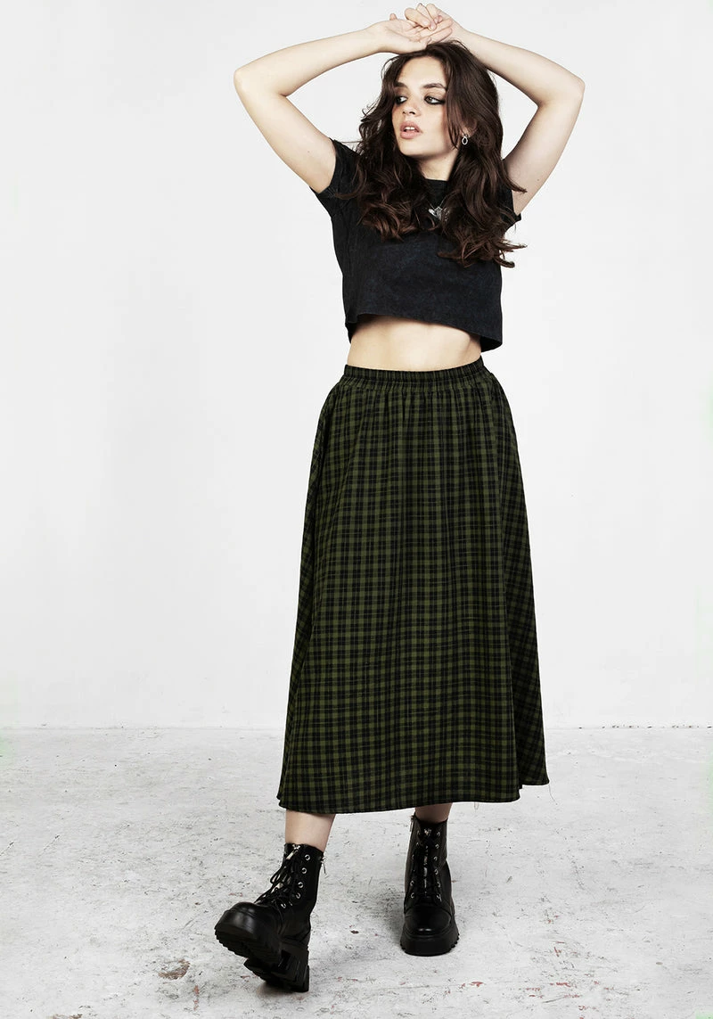 ✦ Green and black gingham midi skirt