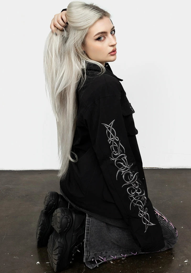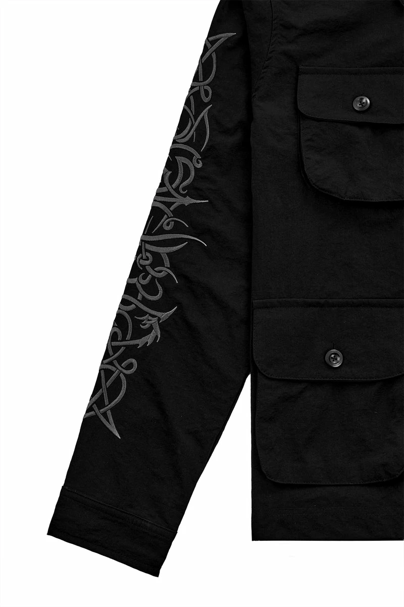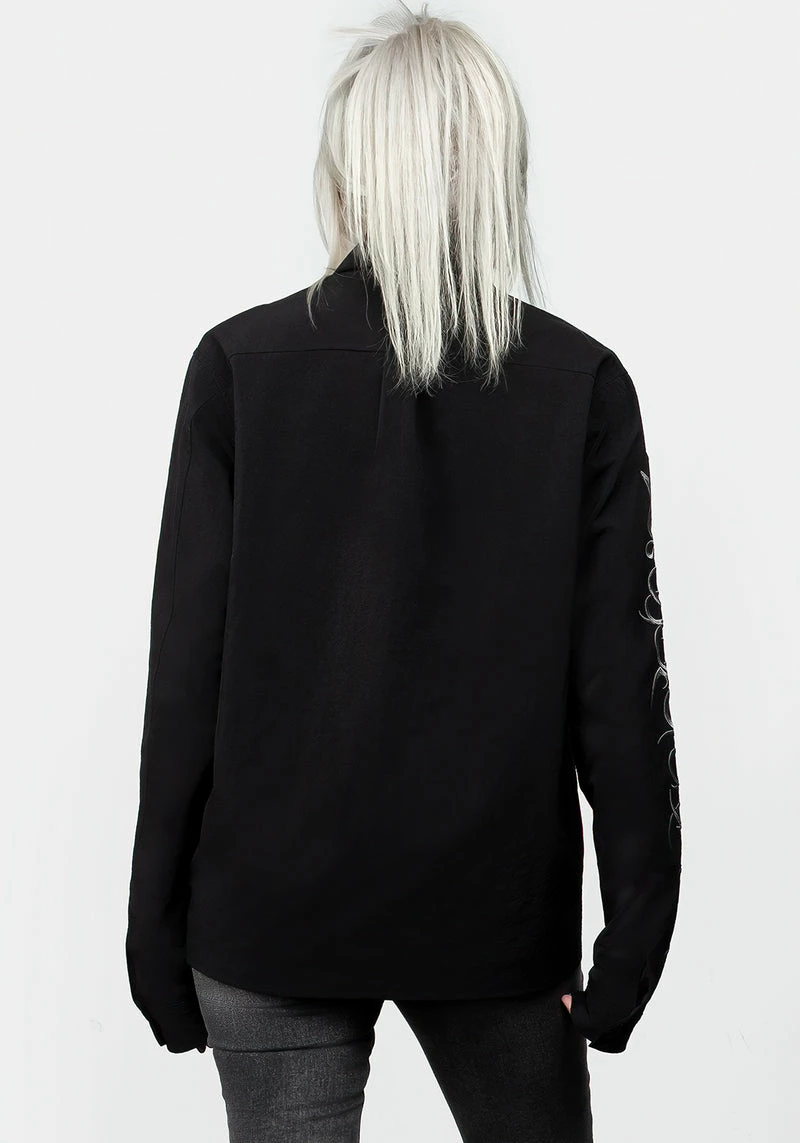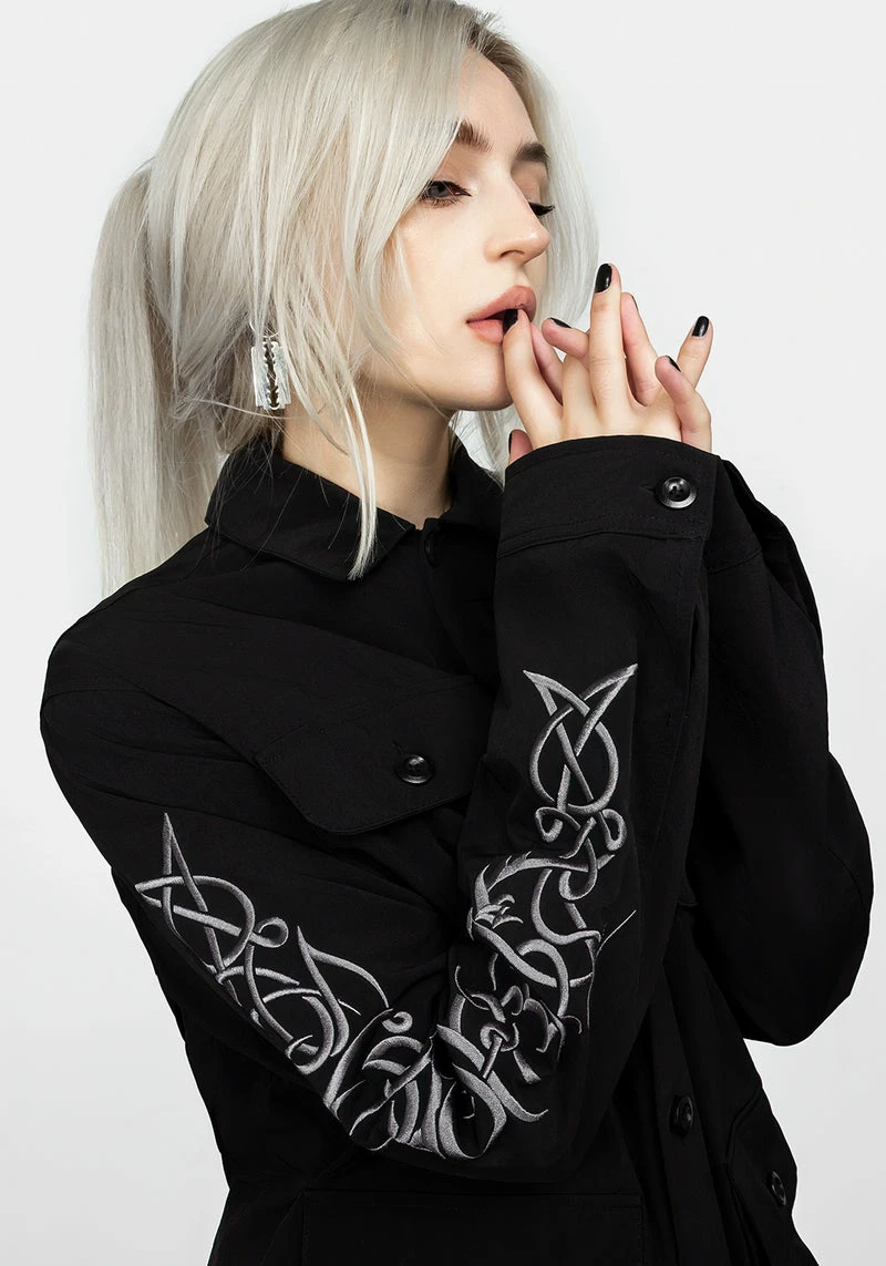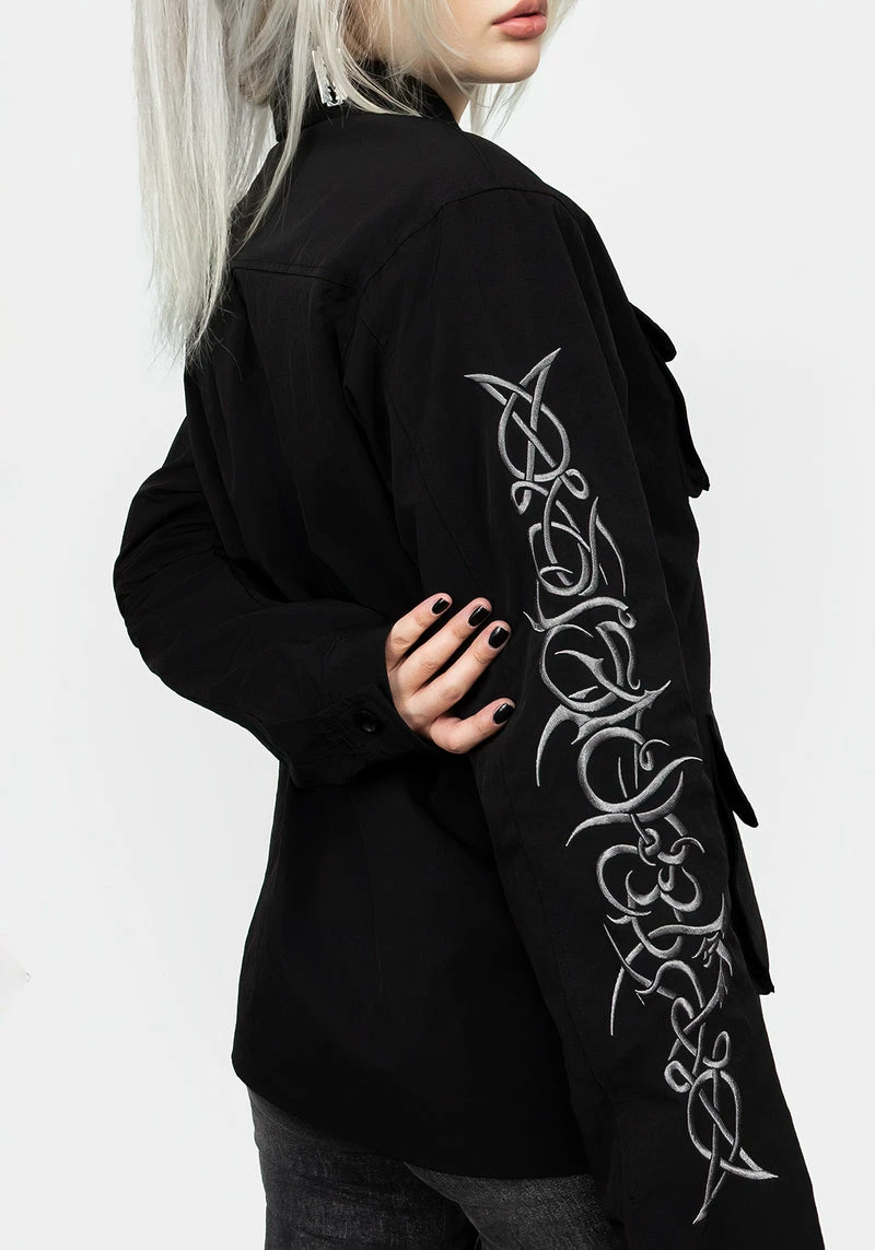 ✦ Black button up jacket with sleeve embroidery Â
