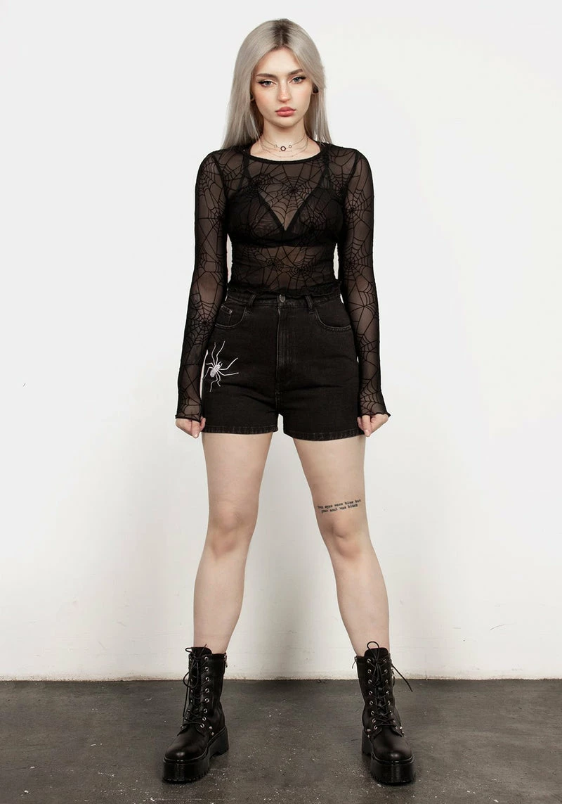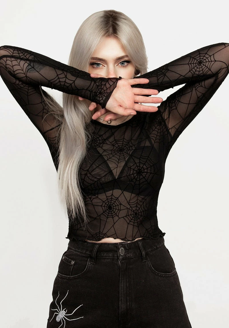 🕸️ Black mesh crop top with long sleevesÂ