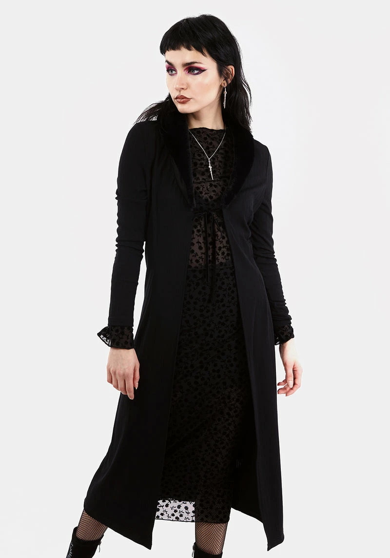 ❋ Black long faux fur cardigan