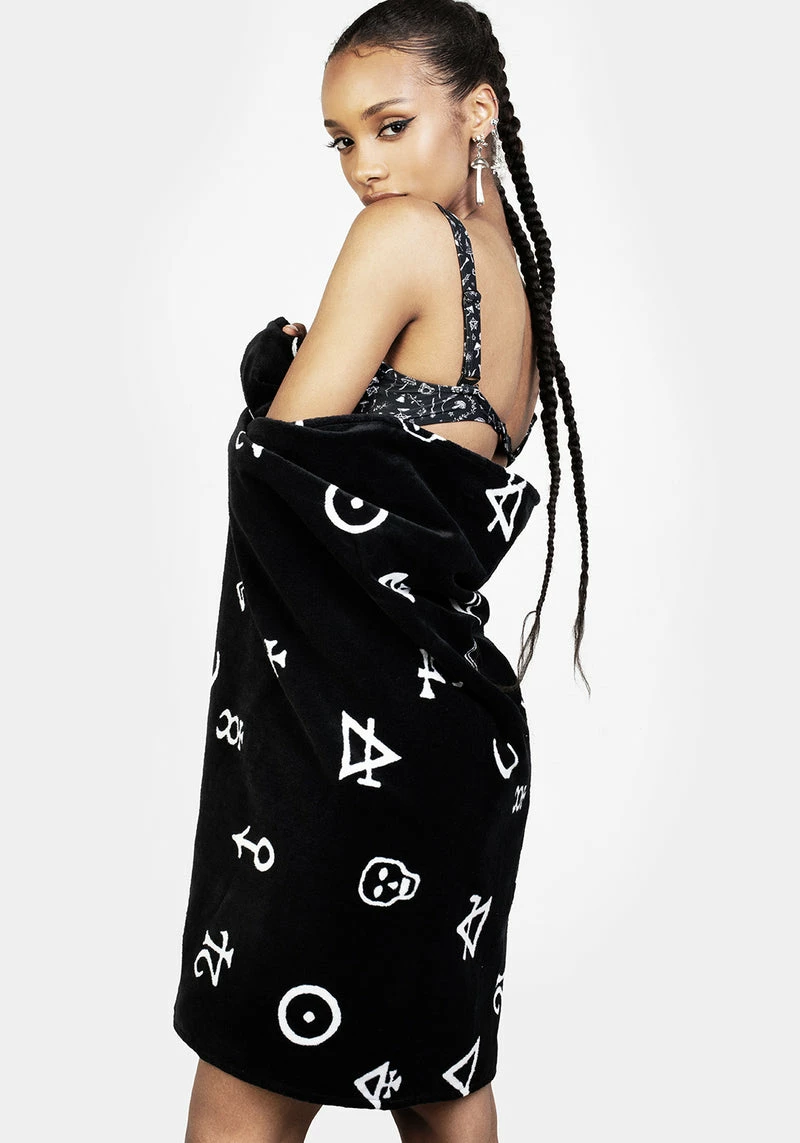 ✦ Black printed beach towel Â