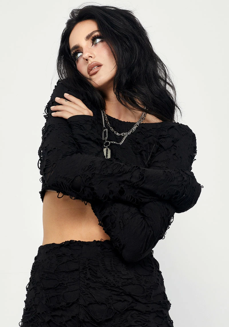 ✦ Layered distressed black jersey fabric – perfectly undoneÂ