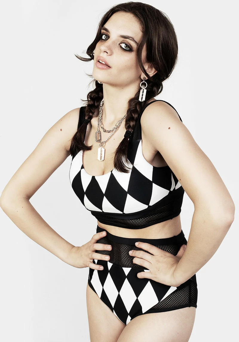 ✦ Super stretchy lined black and white harlequin fabricÂ