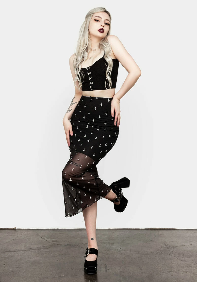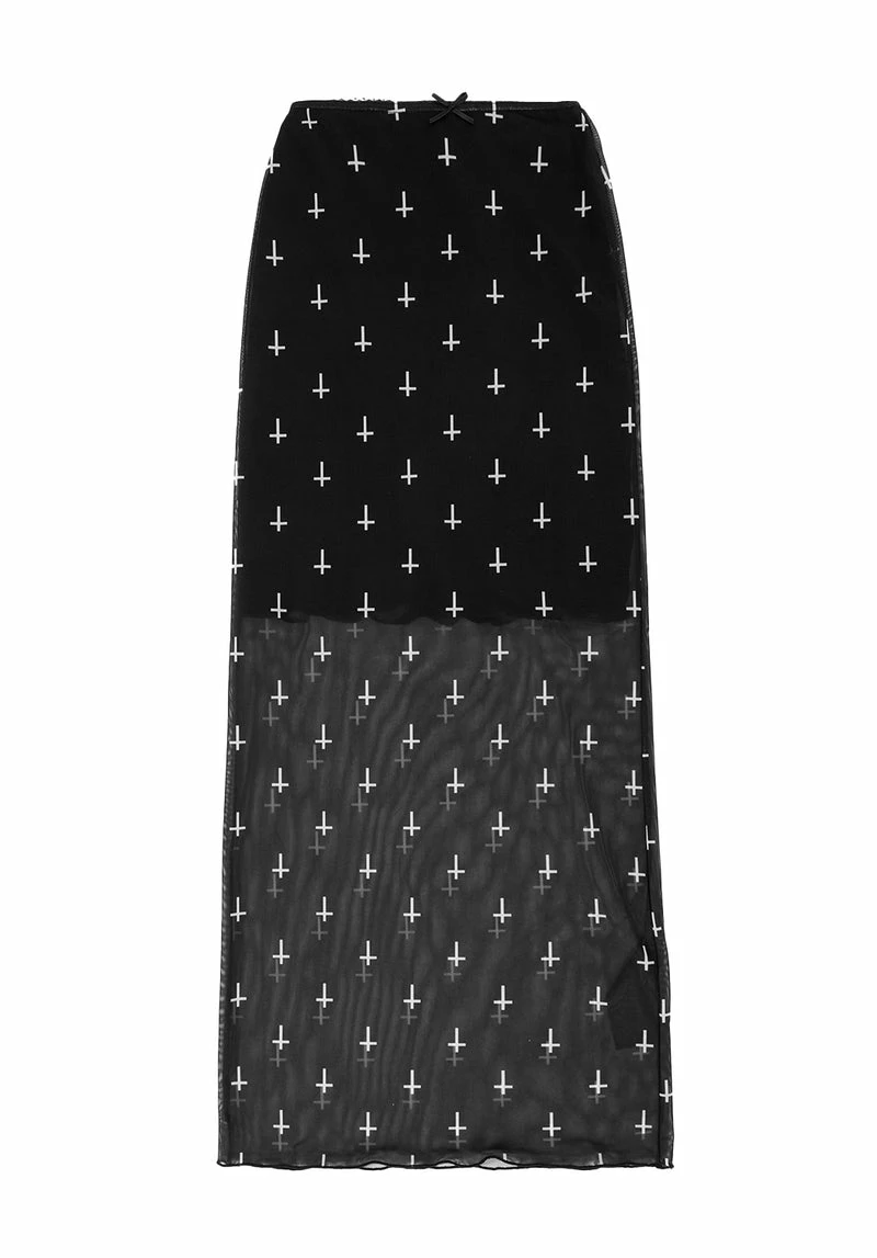 ⸸ Black mesh midi dress with contrast mini skirt