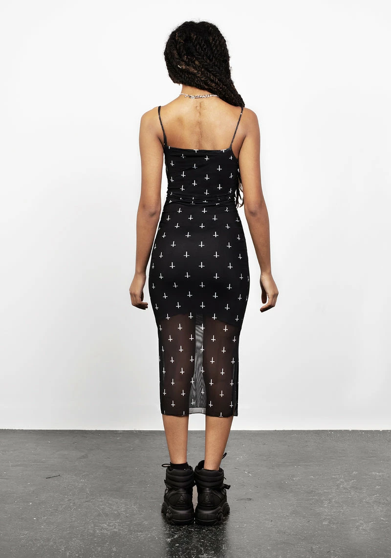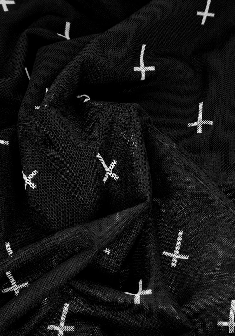 It’s here, it’s sheer, it’s unholier than sipping blood from a skull-shaped goblet. Layer-up mesh and crucify minds in this see-through dress with contrast slip underneath. Simply slink into it, tie on the 90s-cute crop cardi (with lettuce edge hem & cuffs), and slay. With plenty of stretch & all-over cross design, it’s the devilish one-and-done outfit we all need in our lives.