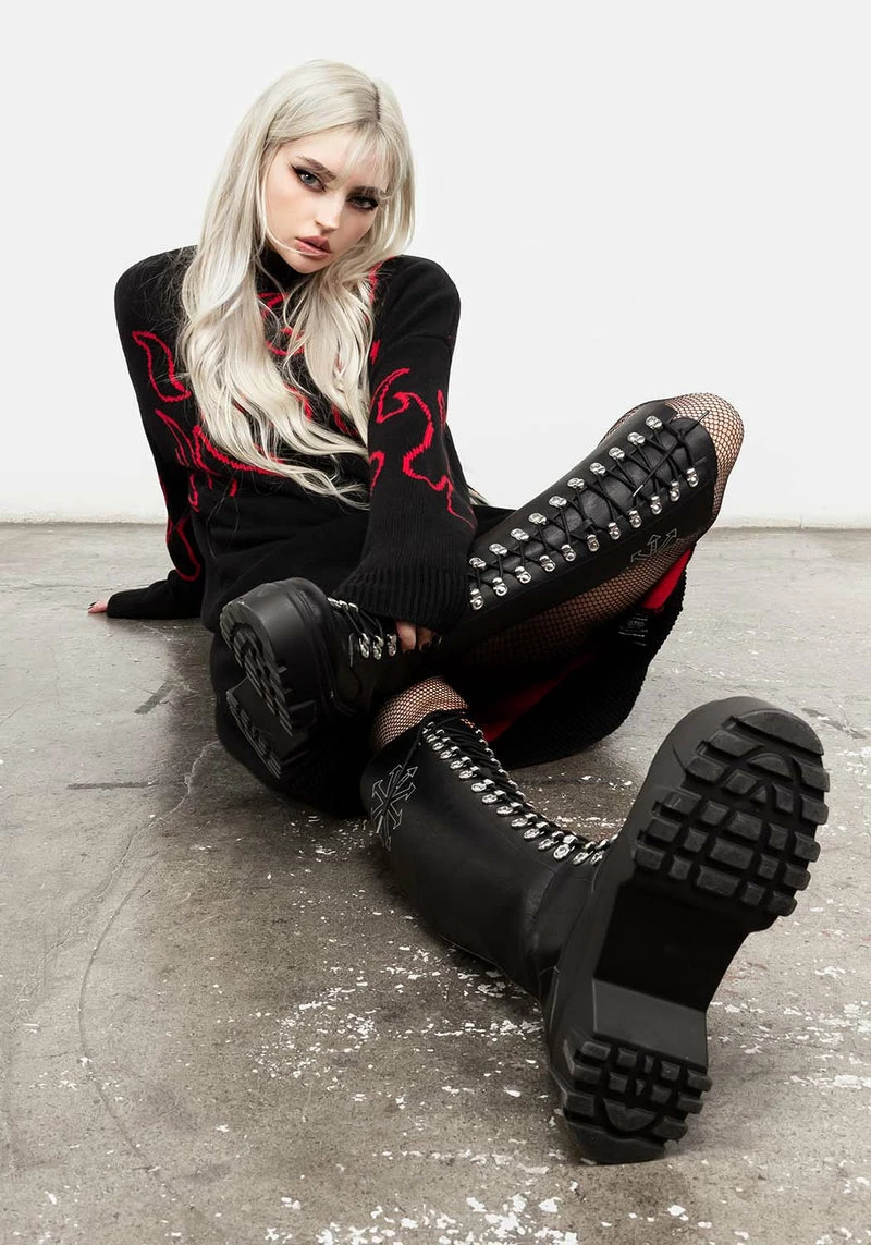 ✸ Chunky knit oversized flame jumper dress
